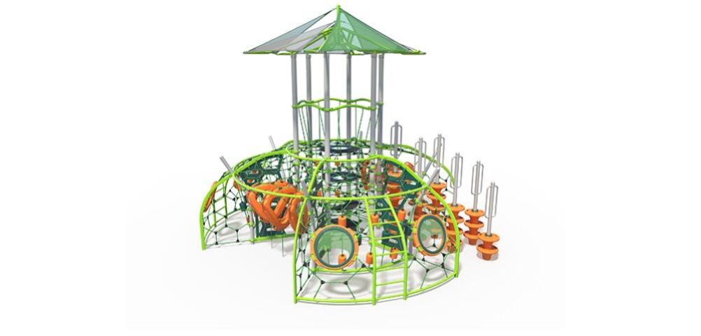 The NF5A9ACAA Commercial Playground is a modern rope-based structure that delivers fun, challenge, and creativity for children ages 5–12. With climbing nets, rope tunnels, and a central tower topped with integrated shade, this playground is designed to keep kids active while staying safe under the sun. Its innovative design supports physical development, coordination, and social play, making it a standout choice for schools, parks, and community spaces searching for high-quality commercial playground equipment.