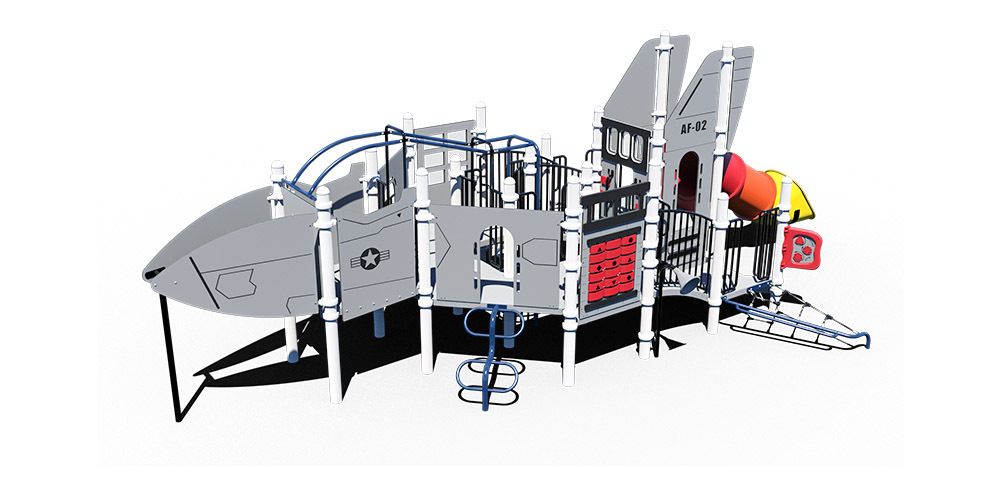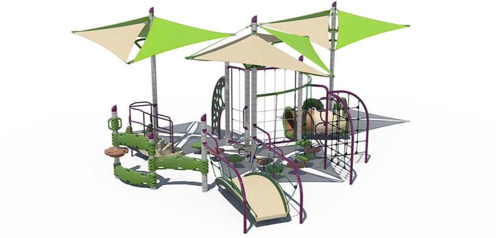 The NF5C039DA Commercial Playground is a vibrant, multi-feature structure designed for children ages 5–12. Combining slides, climbing nets, play panels, and elevated decks, this playground offers endless opportunities for active and imaginative play. With its mix of rope challenges, themed panels, and integrated shade, it provides both adventure and comfort—making