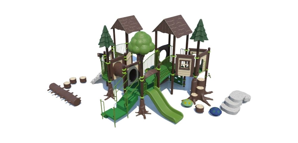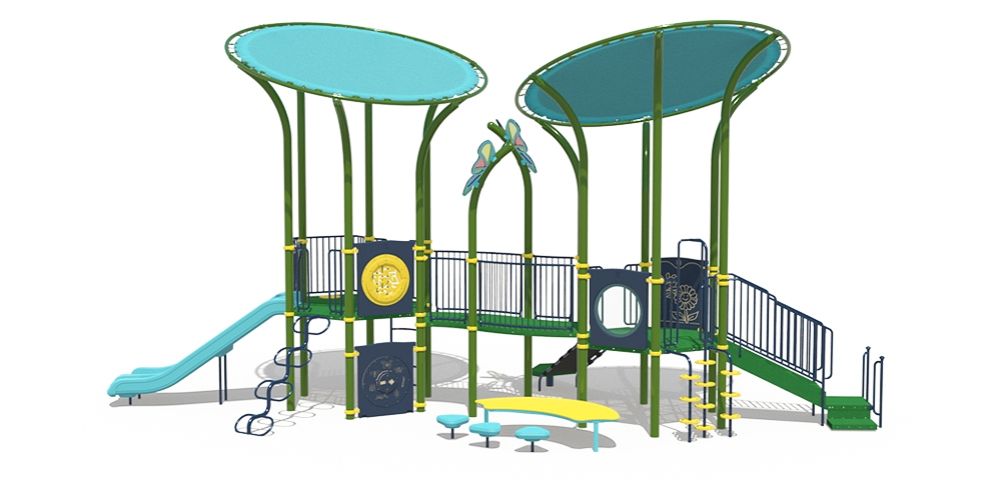 Shaded Explorer Play System (R50E26BDA) Age Group: 2–5 yearsPrice Range: $55,000–$70,000 The R50E26BDA Shaded Explorer Play System combines style, shade, and adventure for preschool and early childhood play spaces. Key features include: Dual integrated shade canopies to keep play areas cool and safe from the sun. Variety of climbers (spiral,