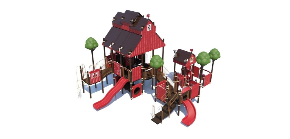 Bring a touch of countryside charm to your park, school, or community space with the R5035D22A Farm Theme Commercial Playground System. Designed for children ages 2–12, this vibrant barnyard-themed playground features fun slides, climbing elements, interactive play panels, and imaginative details that encourage kids to explore, socialize, and stay active. With its farm-style design and tree accents, it creates a welcoming play environment that sparks creativity and endless adventure.