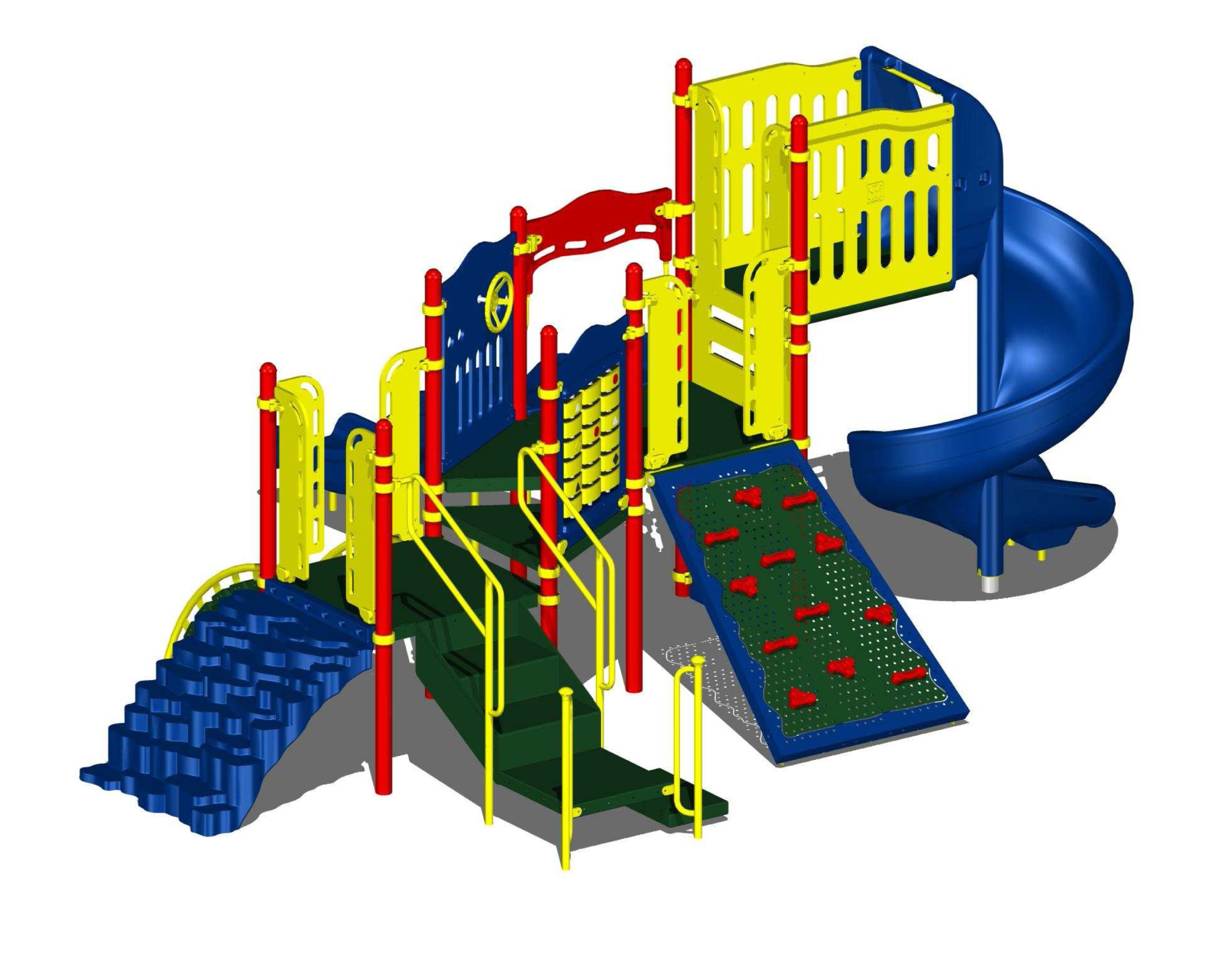 After approximately a month and a half of installation work and several months spent in the planning stages, the new playground equipment for the military base MCCS and MCRD design-build project is finally open. The winner of the design-build bid, Pacific Play Systems, a local commercial playground equipment company located in Carlsbad, California, furnished and installed multiple playground structures, multiple swing structures, a tire swing structure, and a variety of freestanding play activities, such as climbing rock walls, a climbing net structure, and a “marine” landing craft. With a wide range of ground-level play activities, as well as multiple ramps providing access to upper play decks, the new play equipment provides a very high level of wheelchair accessibility for children of all ages. The safety surfacing installed throughout the area, PIP poured in place rubberized surfacing, also makes the entire play area ADA accessible for children in wheelchairs.